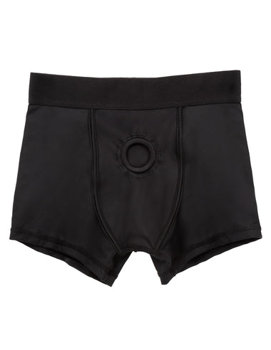 This Boxer Brief by Boundless was created for performance with comfort in mind. It has reinforced O-ring to keep your strap-on toy or packer secure. The band is thick and stretchy. This boxer brief gives you full coverage. The soft and stretchy spandex material lets you move with confidence. It is form fitting, allowing you to wear it discreetly under your clothes. This harness is easy to wear and easy to clean. Wash it with your clothes and hang dry.