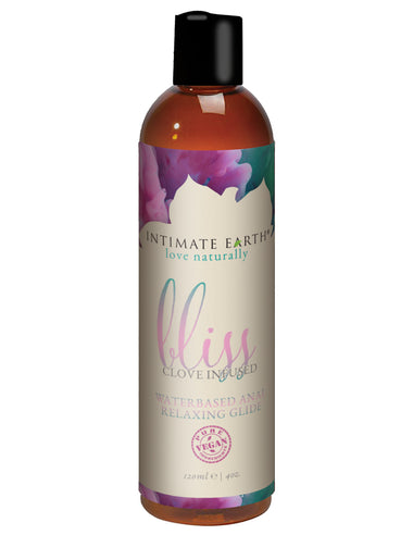 Bliss by Intimate Earth is an anal relaxing glide. It uses clove oil to relax the anal area, but it does not numb it. Bliss allows you to enjoy anal sex or play with its soothing and relaxing properties. This makes anal more enjoyable for penetration and helps increase blood flow to arousal. The texture of this water based lubricant is thicker than average water based lubes. It is condom safe and toy friendly. This lubricant is 100% Vegan.
