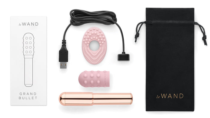 This Grand Bullet from Le Wand is the larger and stronger version on the Le Wand Bullet! The Grand is 40% more powerful than the Le Wand Bullet and has a tube like structure that makes it easier to hold. It is 4.75 inches long and 0.75 inches wide. There is a single button at the bottom that allows you to easily cycle through 11 different vibration functions and 4 intensity levels.