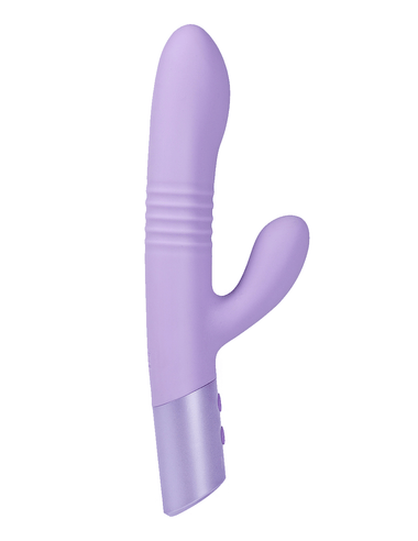 Hop into the hottest form of self care or put on a sultry show with the Ayla Thrusting Dual Vibrator by Maia Toys! This whimsical waterproof 9.6" wonder is designed to massage and cater to your g-spot and clitoris with dual motors for the utmost in orgasms. Immerse yourself in every sense when you indulge in the 10 levels of thrust and 10 vibration modes, suitable for any setting from the boudoir to the bath. The included magnetic USB charger only requires 2 hours of charging to offer up to 40 minutes of continuous play at the highest speeds - and even more time if you desire to take it slow. Grab your ideal water based lubricant, thrust yourself silly and slide into the sexy self care you deserve with a little help from Miss Ayla and Maia Toys.