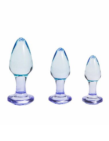 Cute name. Serious sparkle. Say hello to the Maia Butties, a stunning 3-piece anal plug set designed to please at every level. Each crystal-clear acrylic plug features a gorgeous purple-to-blue gradient and a faceted base that adds a touch of glam to your play. With sizes ranging from 3.25 to 4.5 inches, Butties are ideal for beginners easing into anal exploration or for experienced users building intensity. The smooth surface ensures effortless insertion and comfort, while the sturdy base provides security during use. Compatible with all types of lubricants, these dazzling plugs are as practical as they are beautiful because your pleasure should shine just as bright.
