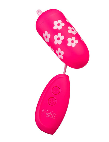Petal into the beauty of the beginner friendly vibrating egg that is the Maia Rosie. This little bullet vibrates into your sensitive areas controlled by its attached remote. With the wired remote, you'll have access to the 15 vibration functions. The floral print onto the medical grade silicone is very nostalgic and quite retro. In the kit also includes a USB charging cable for easy charging on the go. With a full charge of 2 hours, you'll get a play time up to 40 minutes. It's 2.5 by 1.25 inches of size, with its easy to use controls, it makes this a great beginner's toy for those who are dipping their toes into sex toys.