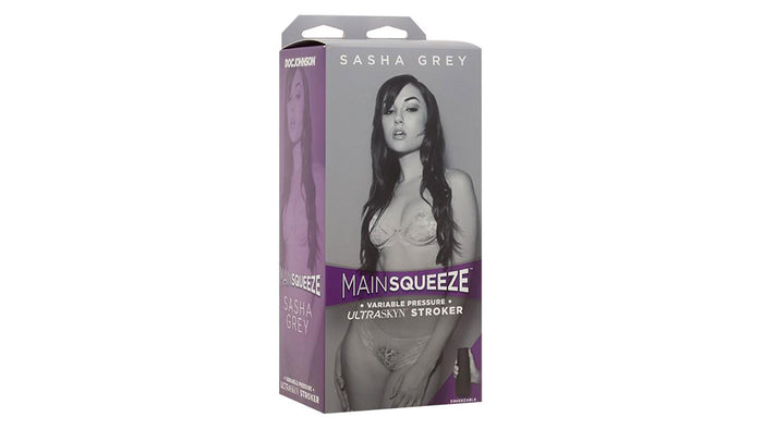 Experience Sasha Grey through her Main Squeeze masturbator by Doc Johnson. It is made of Ultraskyn, a soft and realistically fleshy material. It has an ABS case with adjustable end cap for pressure level. This masturbator was molded directly from Sasha Grey. It's inner lining is ribbed with texture. Its case is discreet and protects your sleeve from dust and ready to go.