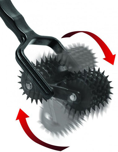 The Master Series Dual Pinwheel is ideal for beginners to sensation play. This ABS plastic pinwheel features dual heads which pivot 360 degrees, with 5 rows of pins on each. The handle has indents for ease of grip.