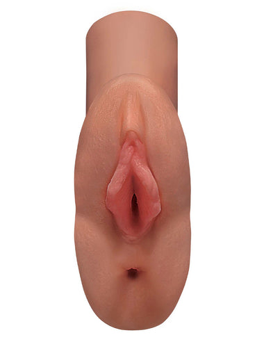 Thrust into the Perfect Pussy Double Stroker by PDX Plus. It is made of Fanta-Flesh® material. This stroker is 7 inches long, 2.5 inches wide, and 3.5 inches thick. It features a realistic vulva with a vaginal and anal opening. The Perfect Pussy Double Stroker feels ultra-realistic with its lifelike folds and texture. You don't have to commit to either opening. Alternate between the two as often as you like. Each opening has different textures to give you maximum pleasure. It has a Suction-Action Closed Tunnel Design to give you mind blowing sensations.