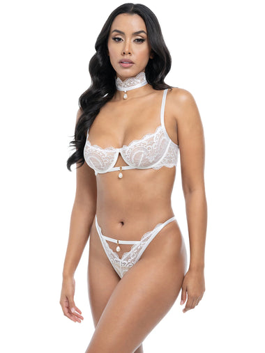Slip into Perla and let your lingerie do the talking ✨🔥. The Perla Lace Set features delicate lace, an unlined underwire bra for just the right amount of lift, and an irresistibly daring open-back panty. Complete with a matching lace collar adorned with a faux pearl charm, this set is the perfect blend of sophistication and temptation.