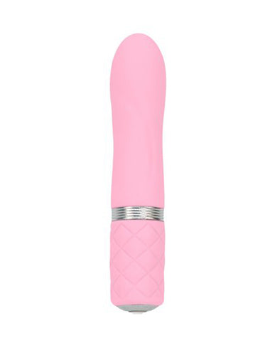 Flirty by Pillow Talk is a pretty vibrating bullet with a Swarovski crystal power button. Flirty is a cute little bullet that can tease and please the clitoris, labia, or nipples. This pretty bullet is easy to grip with its textured handle. Use flirty solo or with your partner in any position. This bullet is 4.3 inches long and 0.9 inches wide. It is made of smooth, solid silicone material with metal embellishments and a pretty usable Swarovski crystal. This vibrator has a travel lock and can be pressed 3 times to unlock. Pair Flirty with a little water based lubricant for the best glide.