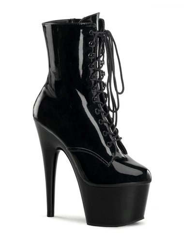 The Adore 1020 by Pleaser is a platform, lace-up, ankle boot. It has a 7 inch (17.8cm) Stiletto Heel and 2.75 inch (7cm) platform. This ankle boot has an inner zipper to save time putting it on. Pair it with your hottest outfits.