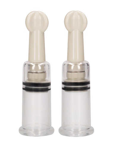 These Nipple Suction Cups by Pumped will elongate, stimulate, and make your nipples sensitive. They draw blood forward, filling the erect nipple. Its increased pressure in the area stimulates your nerve endings. Once released, the nipples are sensitive to touch. These cups are great before or during sex, or even just to tease your nipples. It comes in 3 sizes to choose from: small, medium, or large. They are made with ABS plastic. The small is 1.1 inches wide. The medium is 1.6 inches wide. The large is 2 inches wide. Choose the cups that are wider than your nipple to leave space for suction.