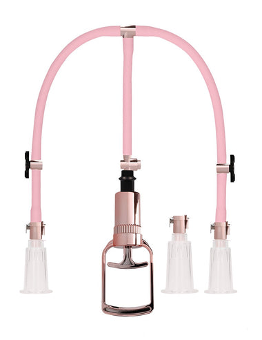Enhance the size and sensitivity of your nipples and clitoris with the Rose Gold Clitoral and Nipple Pump Set by Pumped. The pump draws blood forward, making the surface area more sensitive. Pair this experience with nipple creams or a clitoral stimulant for maximized pleasure. After pumping these areas, all sensitivities have increased, allowing a little touch or gentle kiss to be an orgasmic experience.