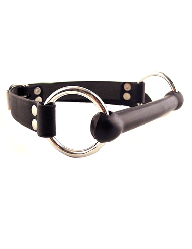 The Leather O-Ring Rubber Rod Gag by Rouge is suitable for the most indulgent of BDSM play. Featuring a total length of 28", a 3.34" rubber rod bit, adjustable leather straps, side metal o-rings and fastened with a buckle, this gag is perfect for both submissives and those who like to keep their partner’s speech at bay. Enjoy the sound of silence with Rouge!