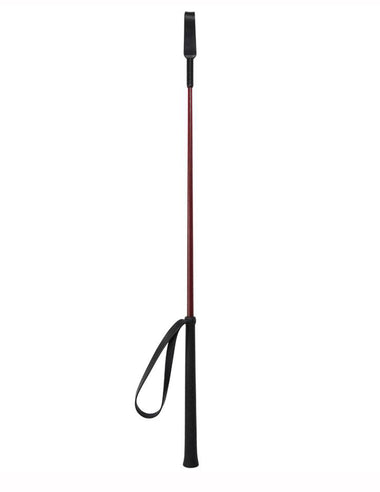 The Enchanted Crop by Sex & Mischief is 25.75 inches long, with a 2.5 inch tip, 15 inch shaft, and 8.25 inch handle. It is made of polycarbonate, TRP, and PVC material. This crop is sturdy and cuts through the air quickly. It feels durable and light to hold. It is a deep burgundy color with black crop tip and handle with wrist strap. This impact toy corrects your sub in the most pleasurable way. Position your partner and leave an impression.