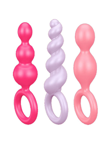 Treat yourself to the Booty Call Plugs by Satisfyer for anal play with a set of 3 differently textured plugs.