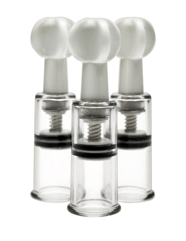 The suction cylinders are small, quiet and discreet and can be used anywhere whenever you desire instant stimulation. No pumps or loud gadgets. The Max Twist Clit and Nipple Triple Sucker Set works with a simple, seductive twist.