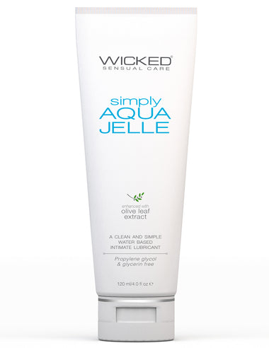 Get wet without the sticky residue. Wicked Simply Aqua Jelle Lube is a water based gel lubricant. It keeps you moisturized for longer periods of time and minimizes bacterial growth naturally with olive leaf extract. It is free of parabens, Glycerine , and Propylene Glycol. You will love how slick and sensual this lube will make you feel. Ideal for anal play, whether with a partner or your favorite toy.